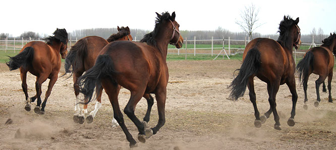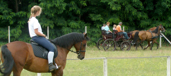In the 300 m2 stable there are 12 boxes and 4 stalls. We also possess a saddle rack room, an ordinary storage and another for fodders, a horse wash and a hoof care room.