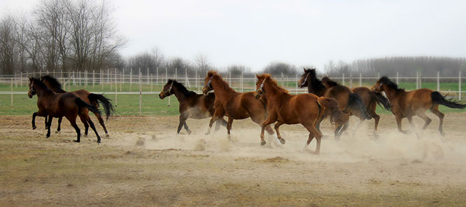 Our Kisbér Half Breed horses originate from the Ördöngősi stud farm owned by Dr. Lajos Szabó. This stud farm is situated in Derekegyház and its purpose is to breed well-built, nice-looking, tame, docile horses that are capable of being used both in riding and carriage sports. In the breeding process they use Kisbér Half Breed stallions that are suitable for the breeding, but they also engage English Thoroughbreds and Sport Half Breeds for developing skills.